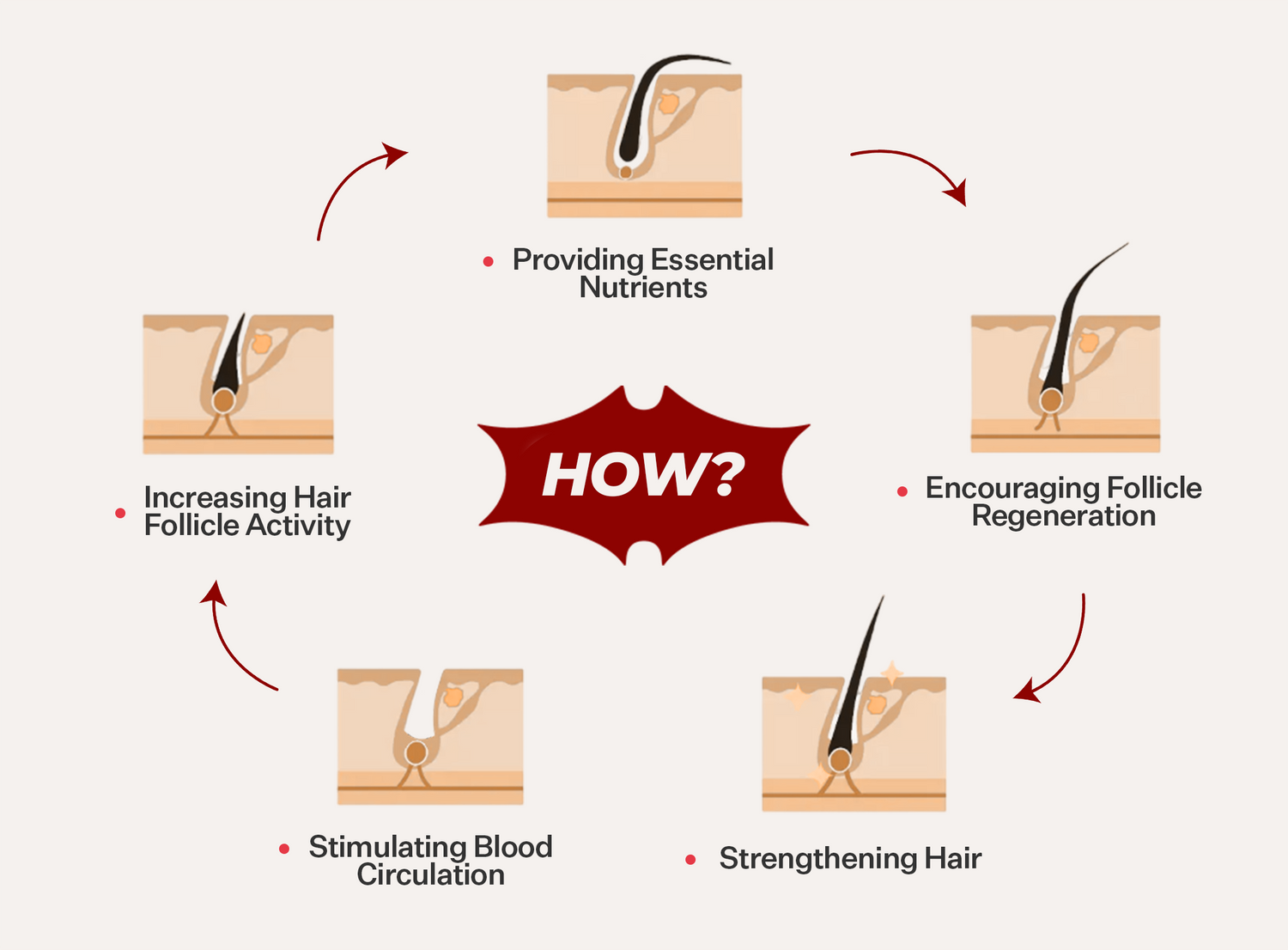 Ginseng: Stimulates follicles, improves circulation, reduces hair loss, and supports growth.
